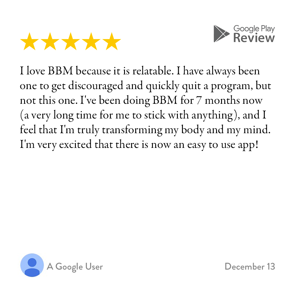That’s why we offer a FREE 7-day trial when you sign up through our website. This gives you full access to explore the BBM Method, workouts, meal plans, coaching, and community before any billing begins.