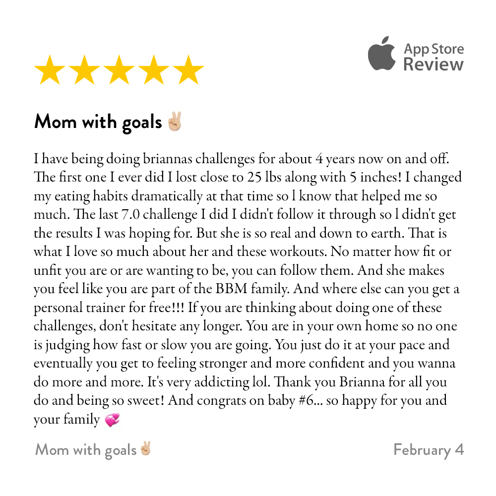 Known globally as “Bikini Body Mommy” online, Briana founded BBM in 2012. Since then, she has served over 12 million women and built a community of more than 30,000 members who trust the BBM Method.